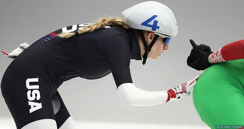 Mia Manganello competes in the women's speedskating mass start at the Olympic Winter Games PyeongChang 2018 on Feb. 24, 2018 in Gangneung, South Korea.