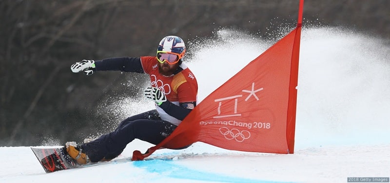 Mike Trapp competes in the men's snowboard parallel giant slalom elimination run at the Olympic Winter Games PyeongChang 2018 on Feb. 24, 2018 in PyeongChang, South Korea.