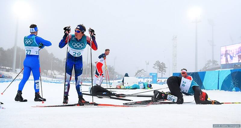 Scott Patterson rests after finishing the men's 50-kilometer mass start classic at the Olympic Winter Games PyeongChang 2018 on Feb. 24, 2018 in PyeongChang, South Korea.