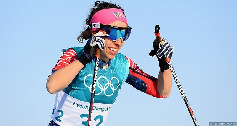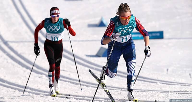 Jessie Diggins competes in the women's 30-kilometer mass start classic at the Olympic Winter Games PyeongChang 2018 on Feb. 25, 2018 in PyeongChang, South Korea.