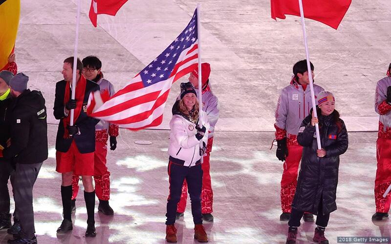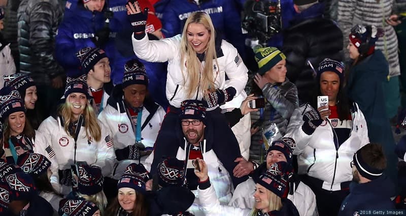 Lindsey Vonn and Team USA participate in the parade of athletes during the Closing Ceremony of the Olympic Winter Games PyeongChang 2018 on Feb. 25, 2018 in PyeongChang, South Korea.