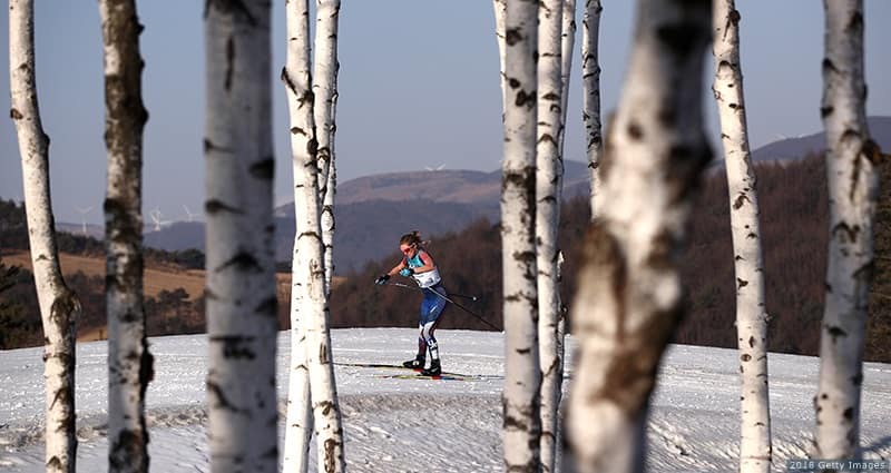 Sadie Bjornsen competes in the women's 30-kilometer mass start classic at the Olympic Winter Games PyeongChang 2018 on Feb. 25, 2018 in PyeongChang, South Korea.