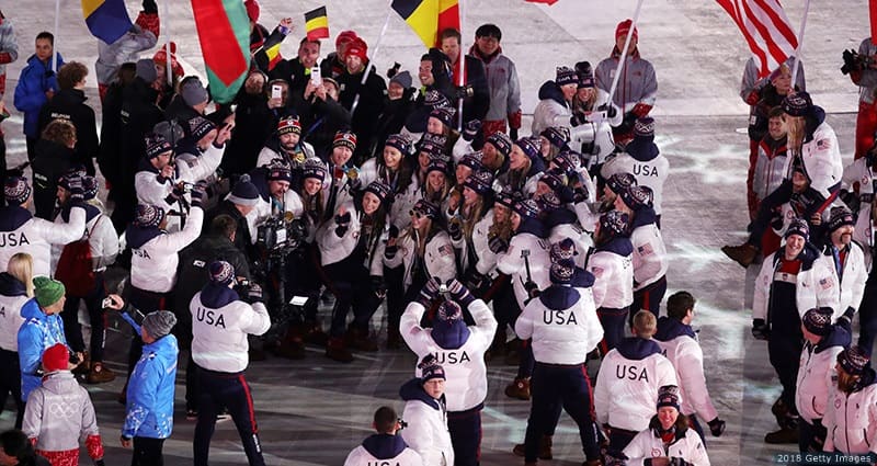 Team USA participates in the parade of athletes during the Closing Ceremony of the Olympic Winter Games PyeongChang 2018 on Feb. 25, 2018 in PyeongChang, South Korea.