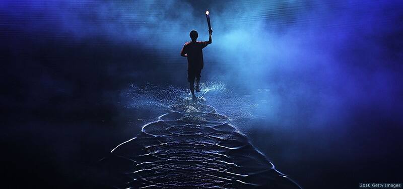 Darren Choy of Singapore carries the Youth Olympic torch before igniting the Youth Olympic Flame at the Opening Ceremony of the Summer Youth Olympic Games Singapore 2010 at The Float@Marina Bay on Aug. 14, 2010 in Singapore.