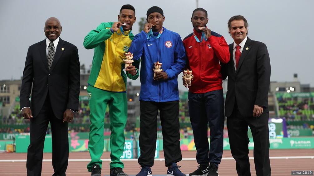 At Lima 2019, Lewis has five athletes from the University of Houston that he coaches whom are competing in track and field. His ceremonial Games role was presenting the medals in the men’s 100-meter dash and men’s long jump, which took place on Wednesday.