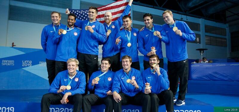 The USA water polo team celebrates the gold medal at the Pan American Games Lima 2019 on Aug. 10, 2019, in Lima, Peru.