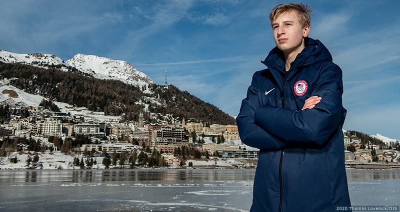 Jordan Stolz is photographed at the lake in St. Moritz ahead of the Winter Youth Olympic Games Lausanne 2020 on Jan. 9, 2020 in St. Mortiz, Switzerland.