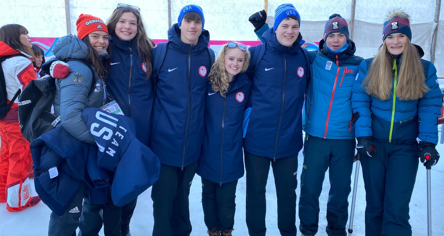 The U.S. luge team poses for a photo at the Winter Youth Olympic Games Lausanne 2020 in Lausanne, Switzerland.
