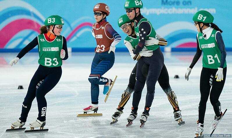 So was the only male short track speedskater to be named to Team USA for the Youth Olympic Games and has represented the U.S. in three events this week. This mixed-country relay marked his final event of the competition, following his races in the 500- and 1,000-meter individual events. His time in Lausanne, he says, has only fed his passion for the sport.