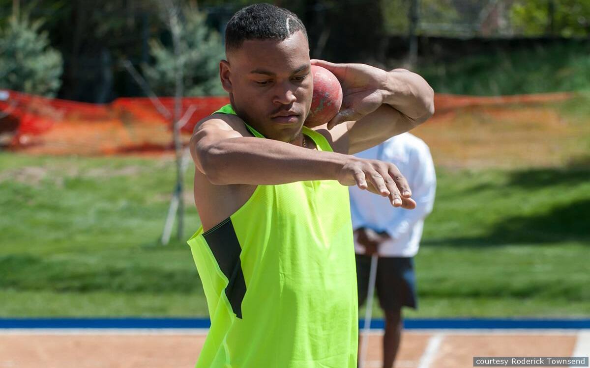 Roderick Townsend practicing his shot put.