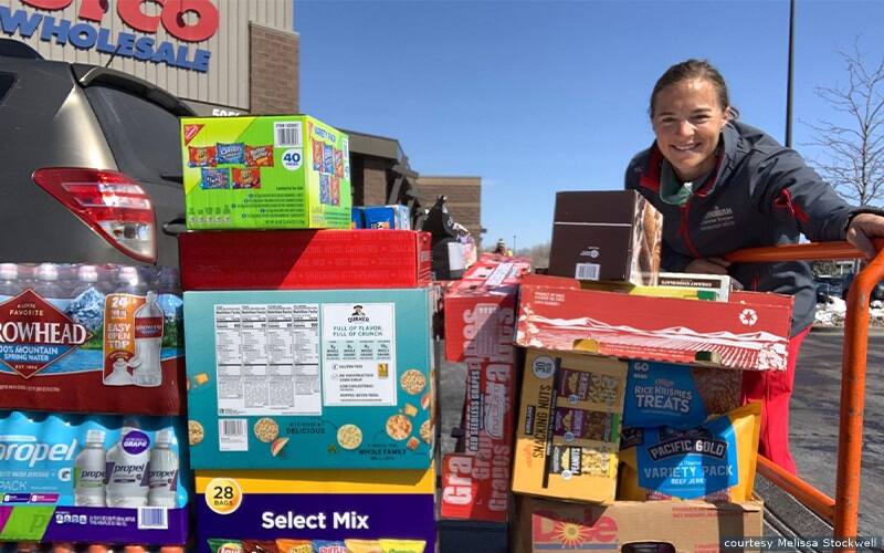 Melissa Stockwell hauls snacks she is raising funds for and purchasing for front-line health care workers in Colorado Springs, Colo.