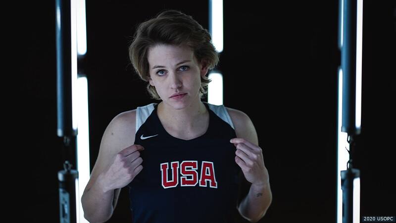 Abby Dunkin poses for a photo at the U.S. Olympic & Paralympic Training Center on Feb. 6, 2020 in Colorado Springs, Colo.