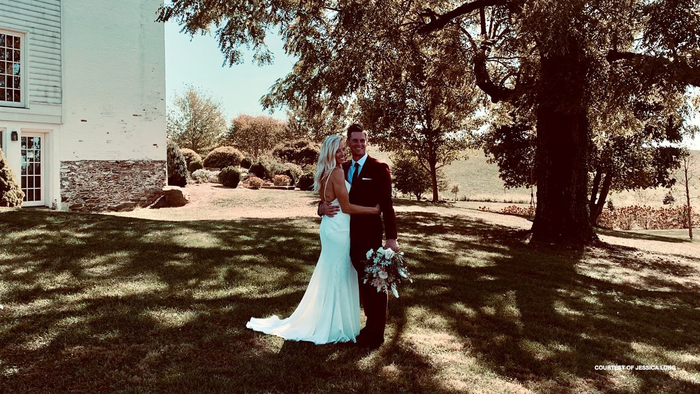 Jessica Long and her husband Lucas Winters pose for a photo on their wedding day on Oct. 11, 2019 in Maryland.