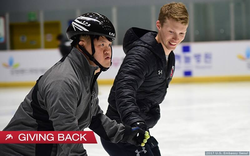 Team USA short track speedskaters joined a local club for the “Thank You, PyeongChang” campaign.