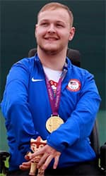 Son of Christal...Born with arthrogryosis, which affects limb control...Underwent bilateral knee-disarticulation at age four...Works as a tour guide at the Olympic & Paralympic Training Center in Colorado Springs, Colorado...Was introduced to the sport by a former marine who competed in the sport...After shooting a perfect 10.9 score on his first day practicing rifle, he pursued it even more...In 2019, he won a gold medal in the R5- Mixed 10m Air Rifle Prone SH2 at the Parapan American Games...He'll make his Paralympic debut in Tokyo.