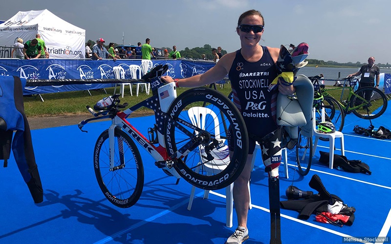 Stockwell is a co-founder of the Chicago-based Dare2tri Paratriathlon Club with Keri Serota and Dan Tun. She is a USA Triathlon Level I certified coach, and serves as a mentor and friend to her fellow Dare2tri athletes as they train and compete. She also serves on the board of directors for the Wounded Warriors Project, USA Triathlon Foundation, and the USA Triathlon Women’s Committee. She is a licensed prosthetist but is currently training for triathlon full-time at the U.S. Olympic & Paralympic Training Center in Colorado Springs, Colorado. One of her pre-race rituals is that she always has to eat gummy worms the night before a race. She is married to Brian Tolsma and has two children, Dallas and Millie.