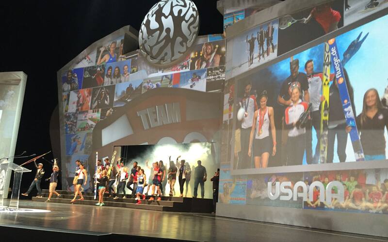 US Speedskating Olympians join other Team USANA athletes on stage in front of 12,000 USANA associates