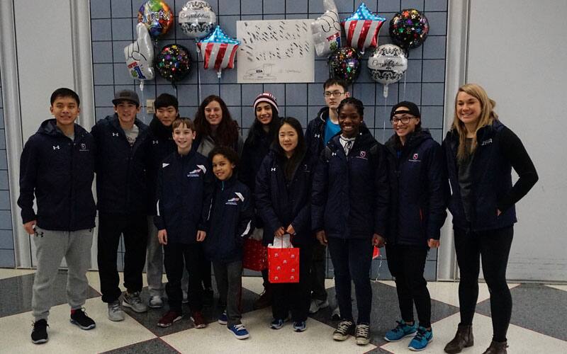 Two Pony skaters from the Northbrook Speedskating Club send off the World Junior Championship team in style.