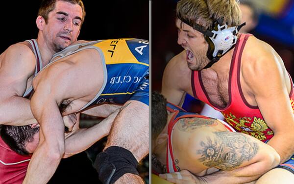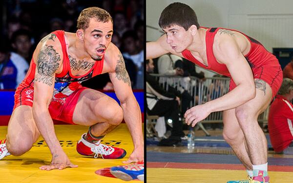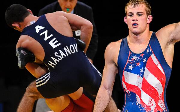 Two-time Hodge Trophy winner Taylor battles two-time World medalist Hasanov at 74 kg.