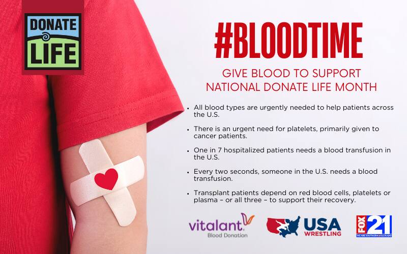 Save the Date: USA Wrestling to partner with Fox21 and Vitalant for blood drive to celebrate Donate Life Month in April