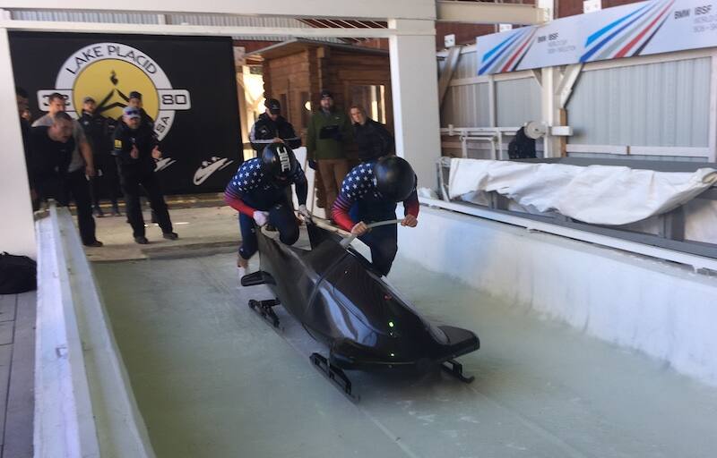Olsen and Weinstock posted the fastest start times of each heat. In their first run, they tied the former 5.00-second start record for the track, set by Latvia in the 2012 World Championships. In the second heat, their 4.96 start shattered it. Olsen is considered one of the top pushing drivers in the world, and Weinstock, a former Brown University decathlete, took second at this year’s USA Bobsled National Push Championships in July.