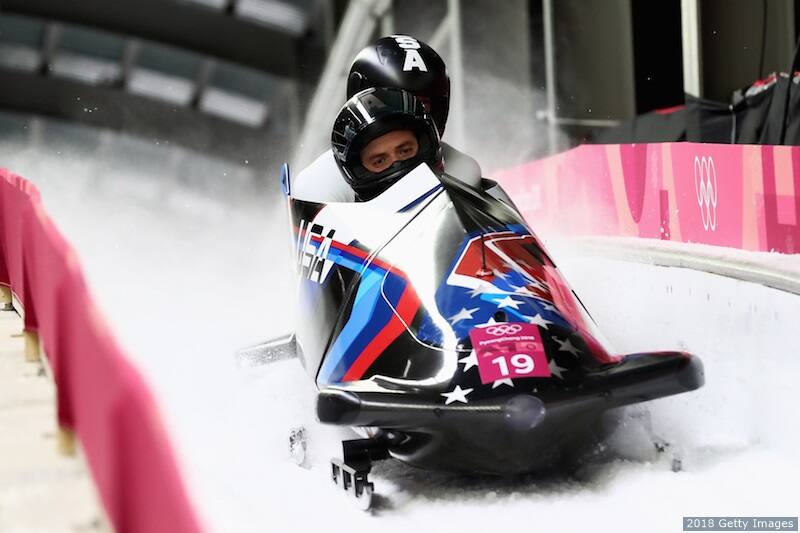 Olsen and Weinstock lead Team USA in 12th after first two heats of 2018 Olympic two-man bobsled competition