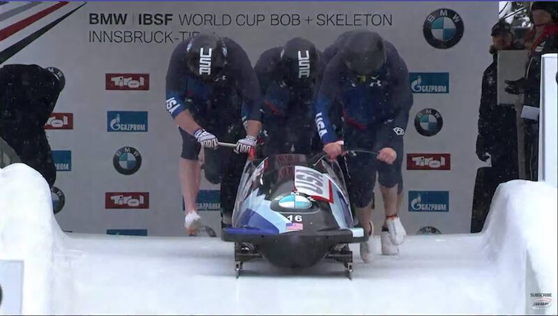 IGLS, Austria (Dec. 16, 2017)- Two-time Olympian Nick Cunningham (Monterey, Calif.) paired with Hakeem Abdul-Saboor (Powhatan, Va.) for fifth in today’s two-man bobsled World Cup in Igls.