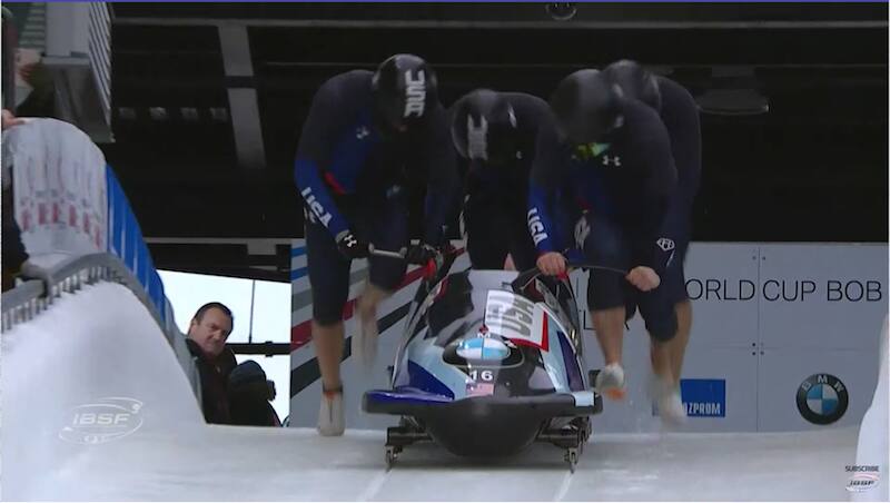 WHISTLER, Canada (Nov. 25, 2017)- Codie Bascue (Whitehall, N.Y.) teamed with Carlo Valdes (Newport Beach, Calif.), Sam McGuffie (Cypress, Texas) and Nate Weber (Pueblo West, Colo.) for eighth place in Whistler’s four-man bobsled World Cup tonight.