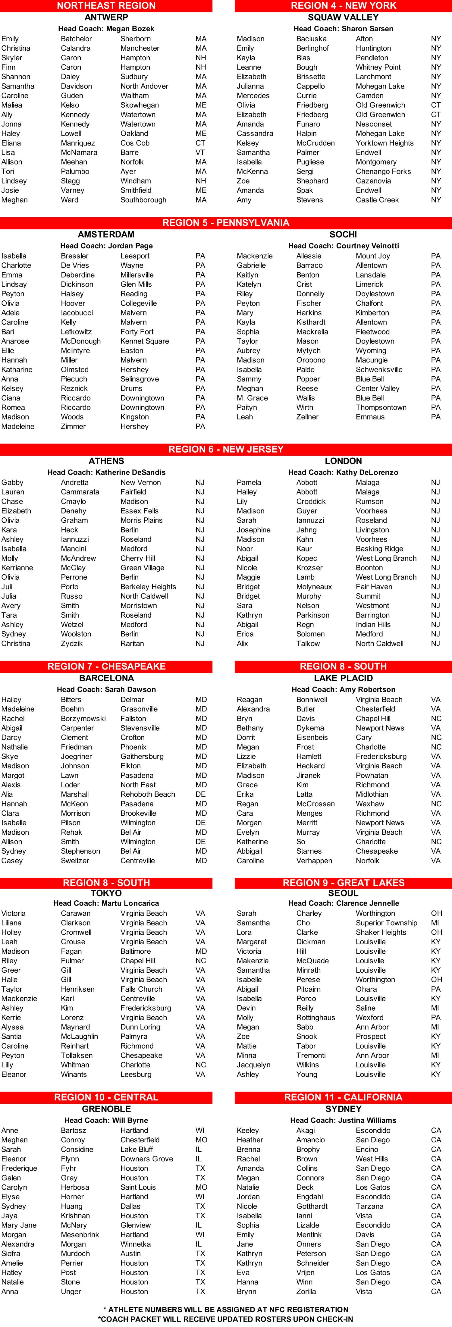 U-16 Rosters