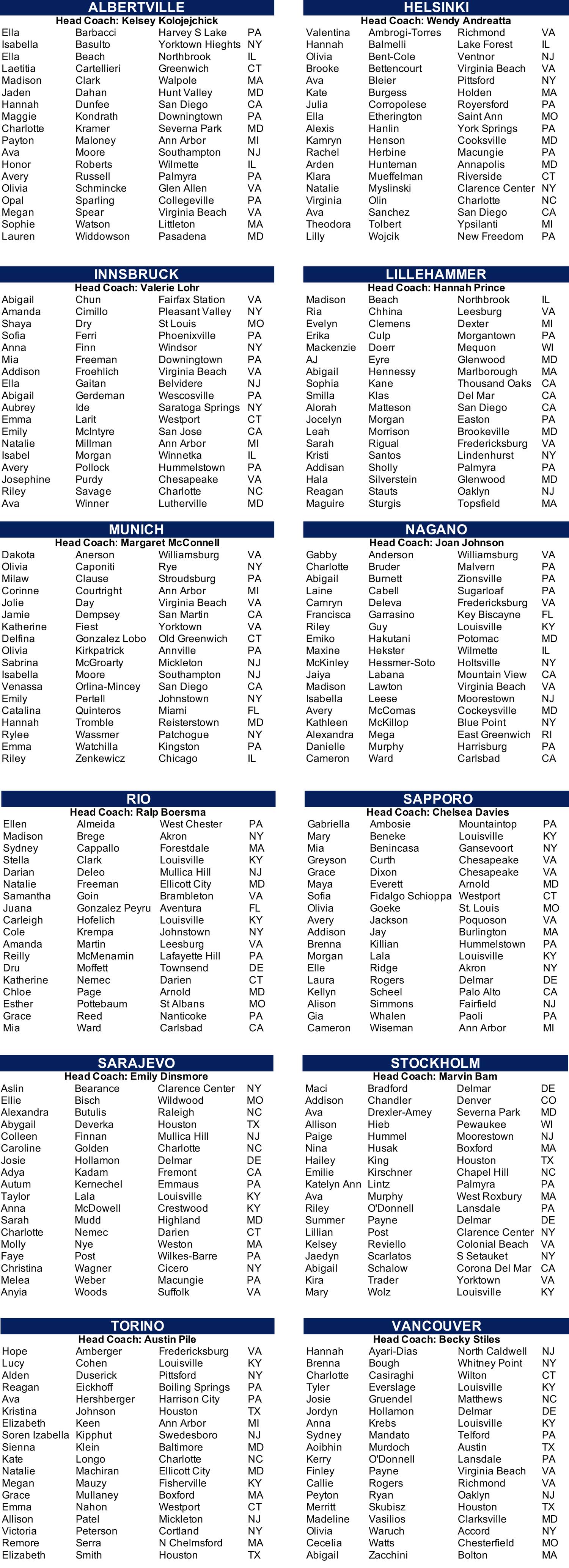 U-16 Rosters