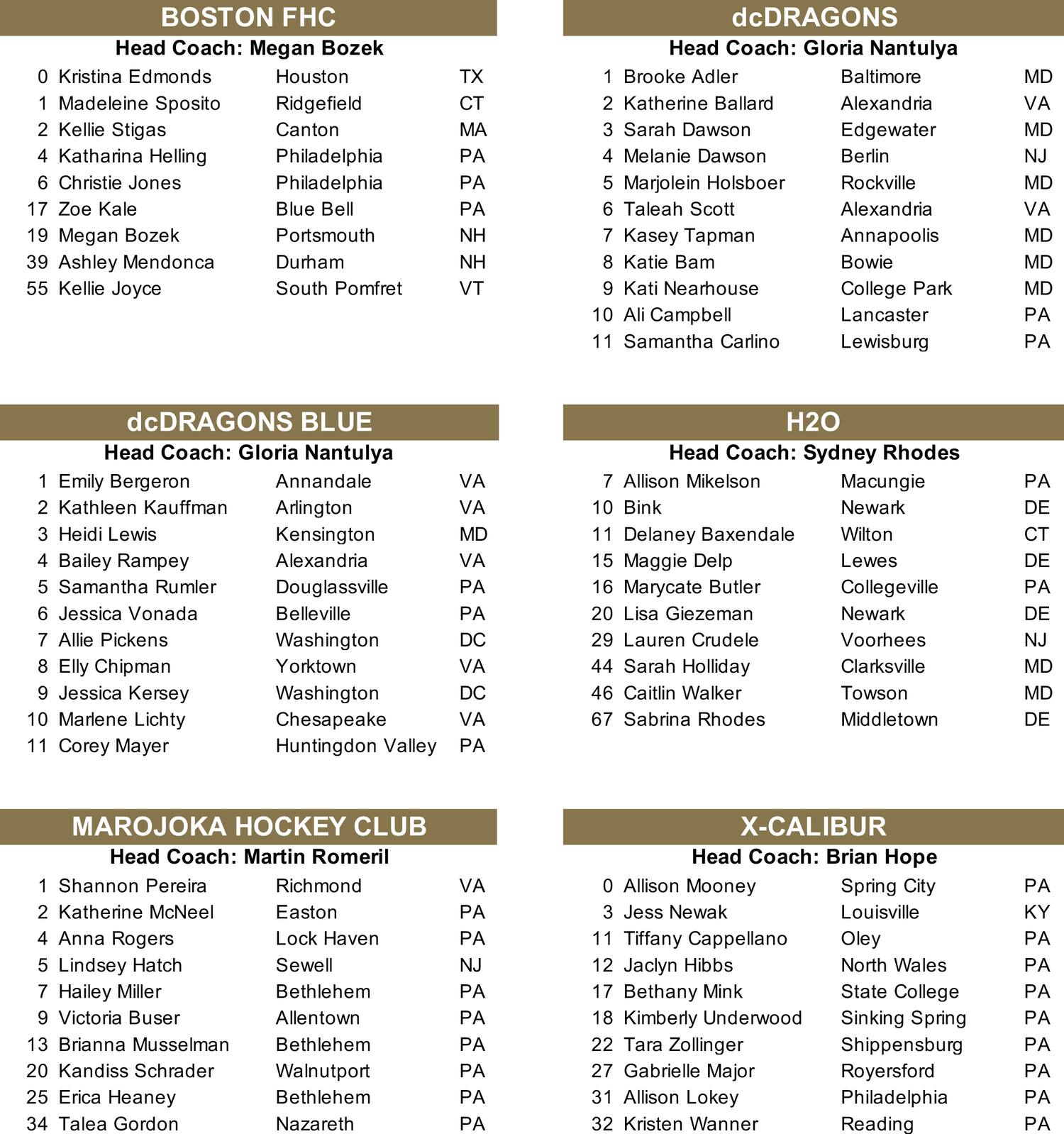 U-19 Girls Rosters