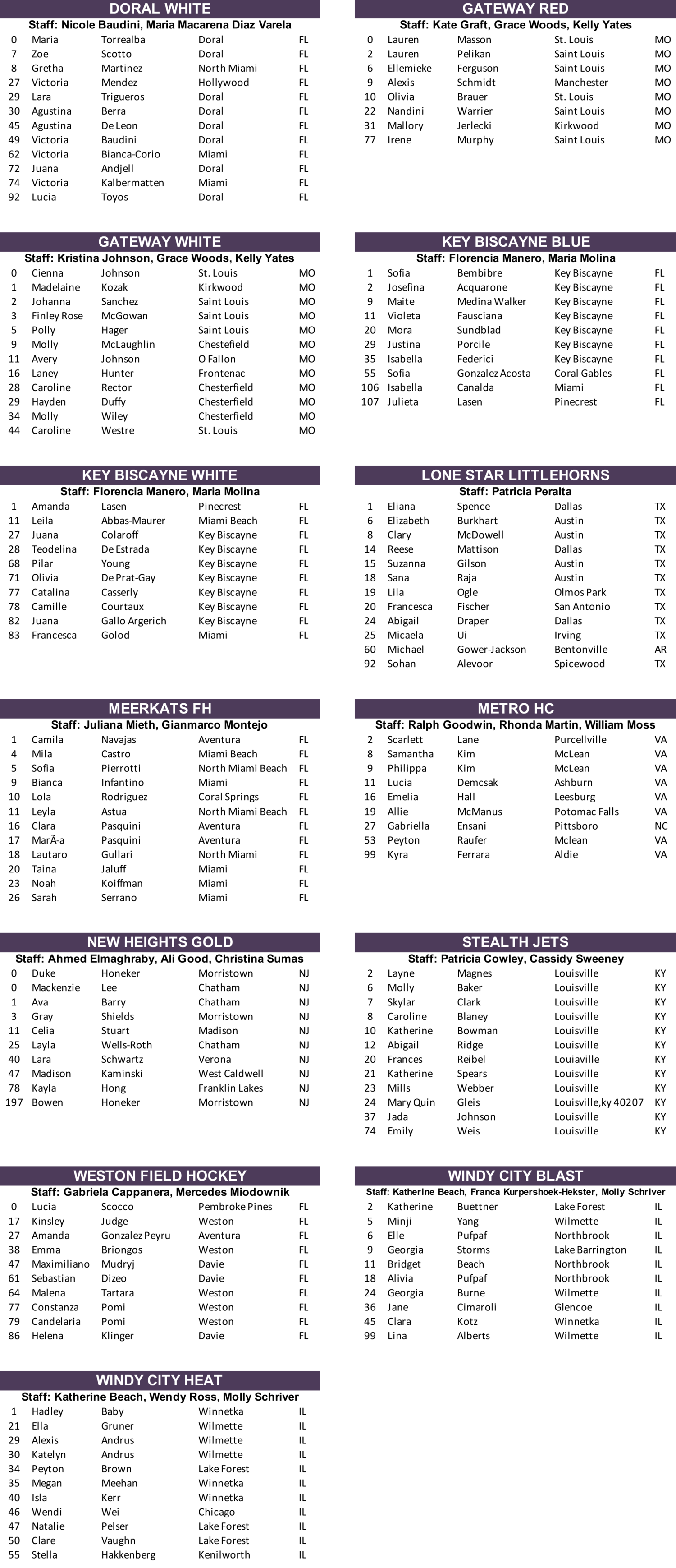 U-12 Co-Ed 7v7 Rosters