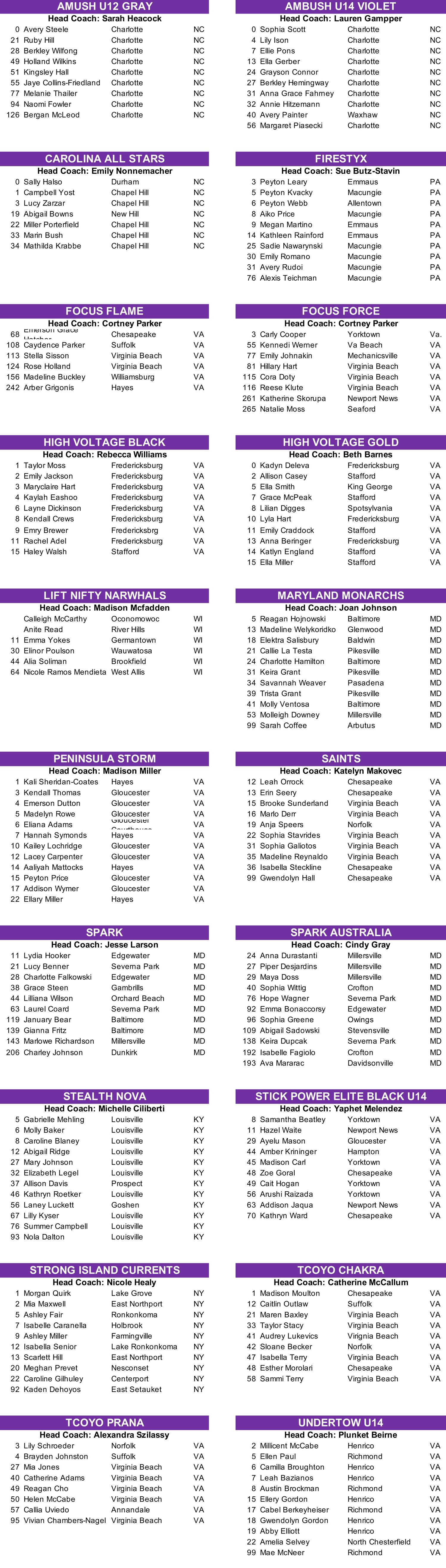 U-14 Girls Rosters