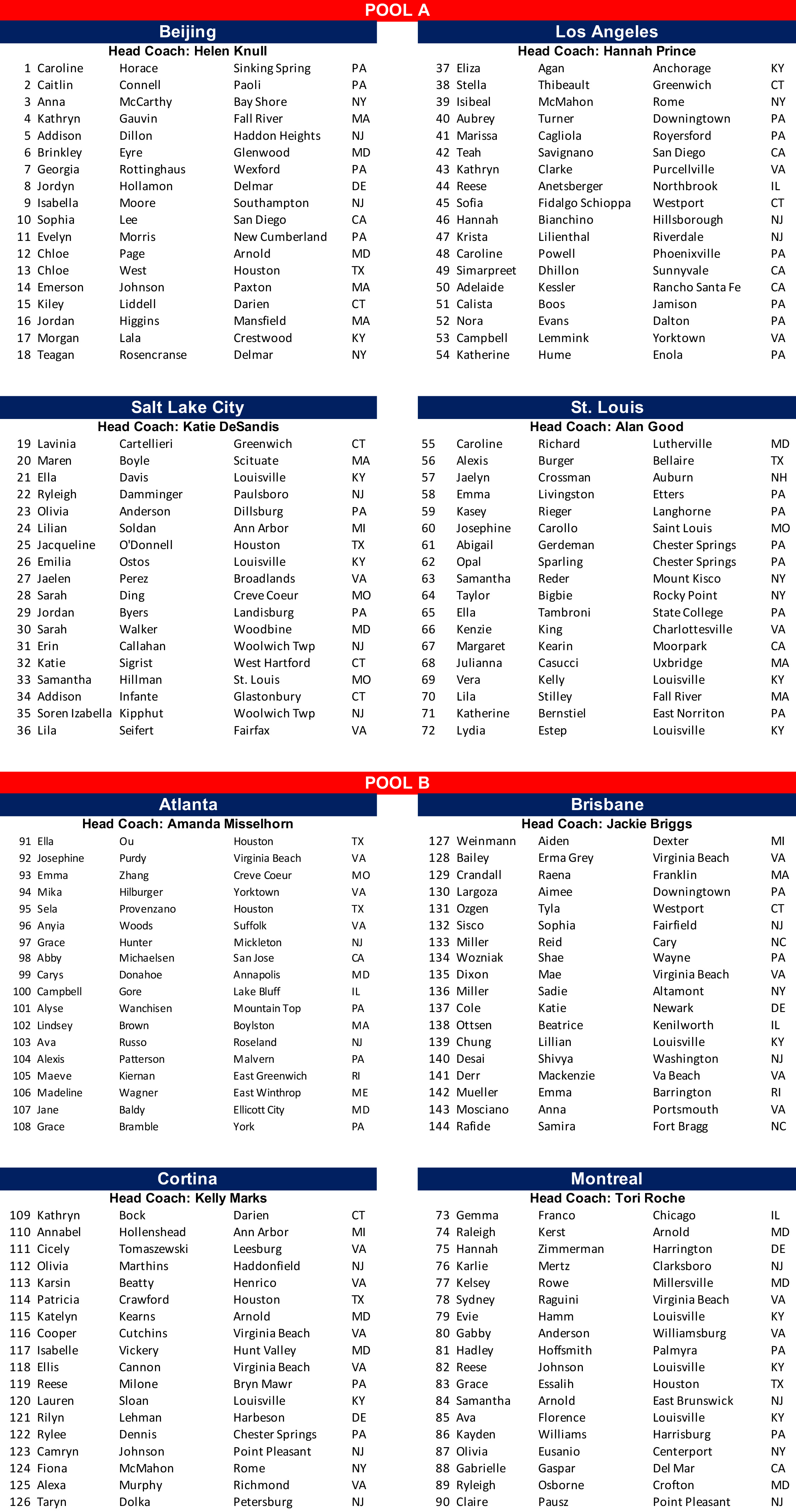 U-16 Girls Rosters