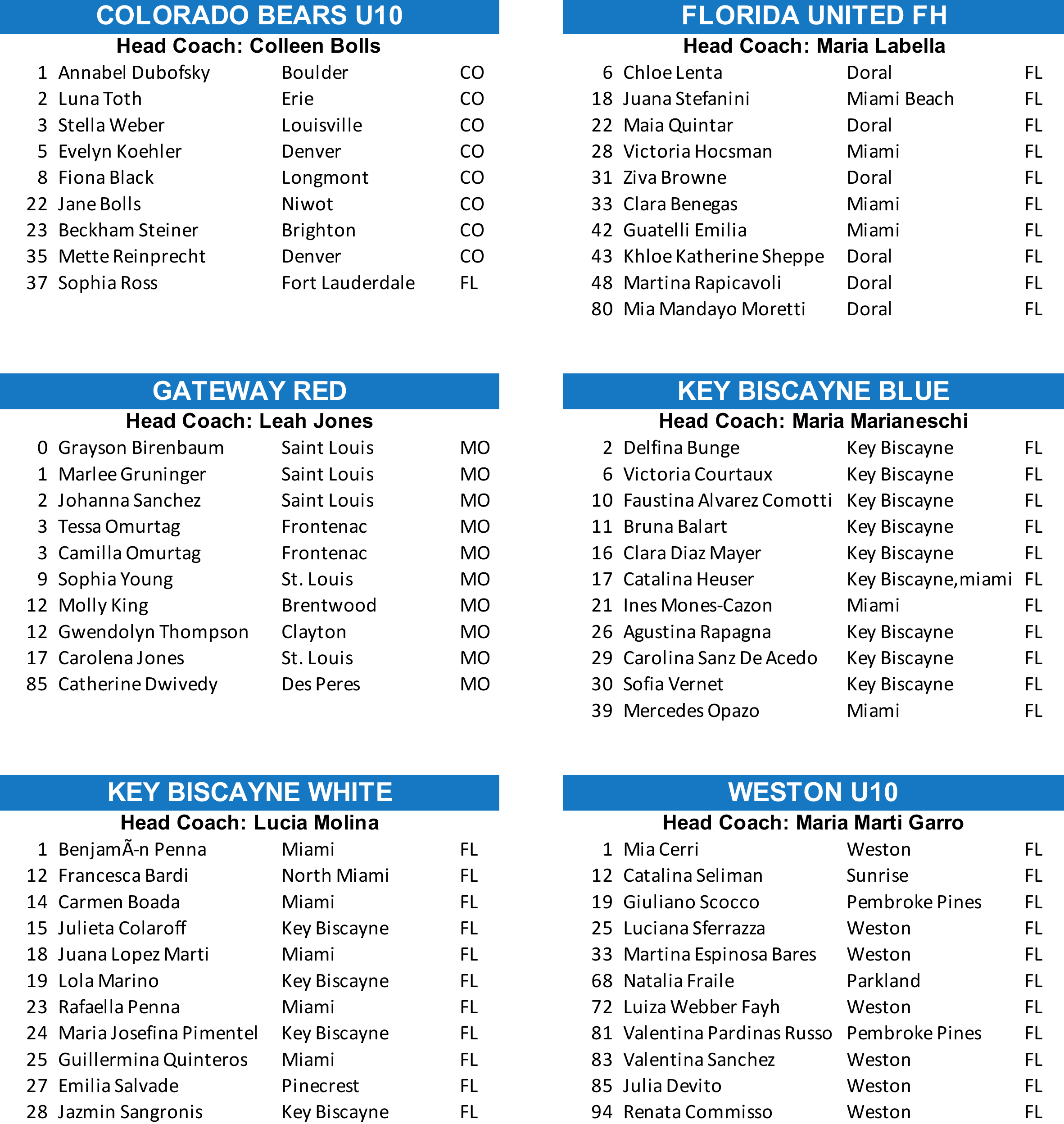 U-10 Co-Ed (7v7) Rosters