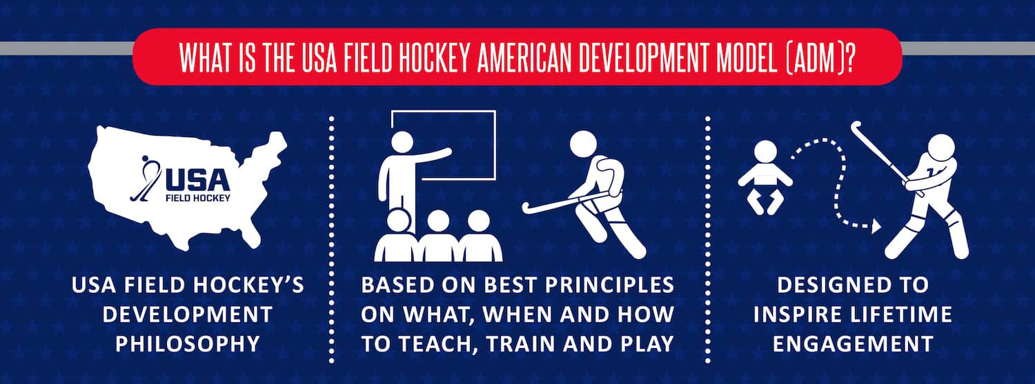 The USA Field Hockey American Development Model (ADM) is a guiding framework for players, coaches, umpires, program leaders and fans to get into the sport earlier and stick with it longer. Field hockey is a sport for life, and the ADM provides best principles for age and stage appropriate development on how, what and when we teach, train and play to maximize fun and enjoyment of field hockey.