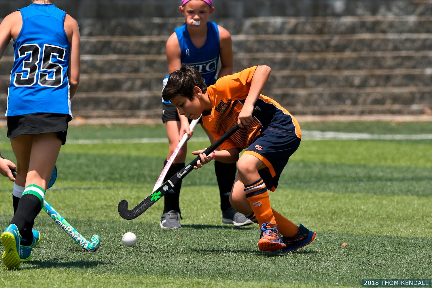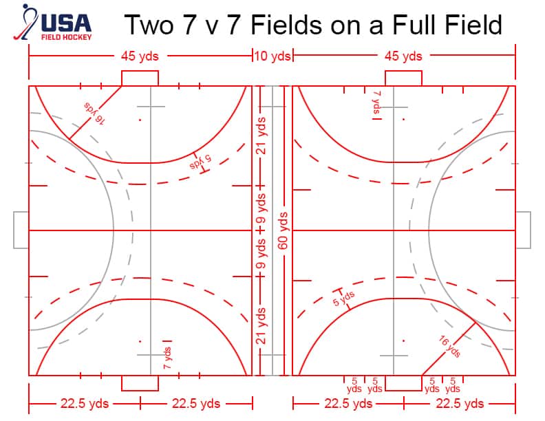 7v7 or 7-a-side is a common outdoor half-field format for athletes under the age of 14, or when facilities or number of players call for a smaller game. Like GAME ON, USA Field Hockey offers half-field 7v7competitions in several national tournaments including the Disney Field Hockey Showcase, Summer Bash Series and National Hockey Festival.