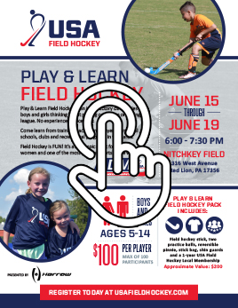 Play & Learn Field Hockey is an introductory clinic series for boys and girls thinking about playing on a team or joining a league. During the course the clinic, players will learn the fundamental, age-appropriate skills needed to have a successful team experience. While learning the requisite skills of the game, players will also learn the rules of play, and most importantly develop confidence to join team competition.
