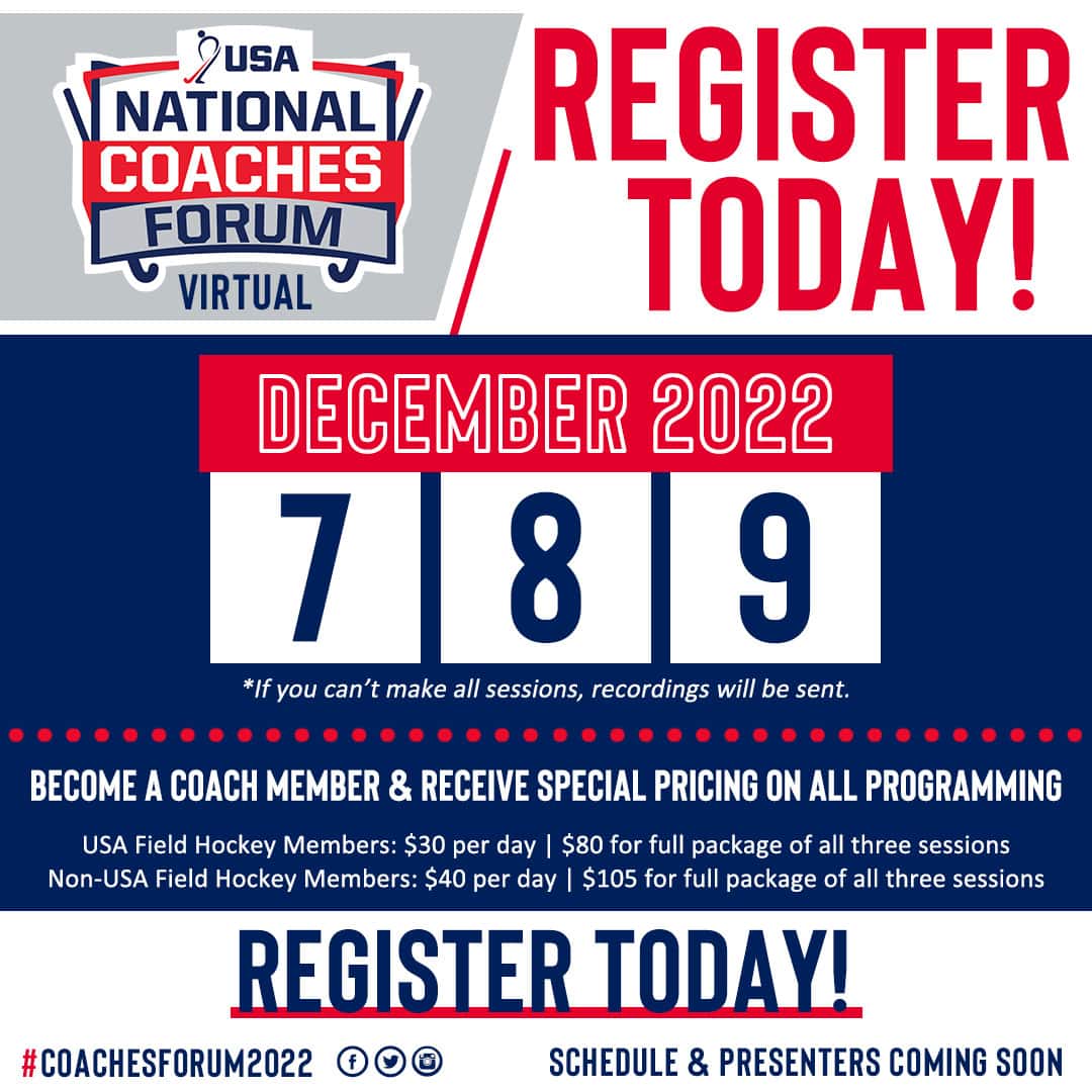 USA Field Hockey will host the Women in Coaching Forum in 2022. More information will be released when confirmed.