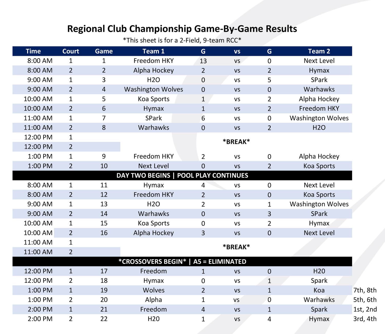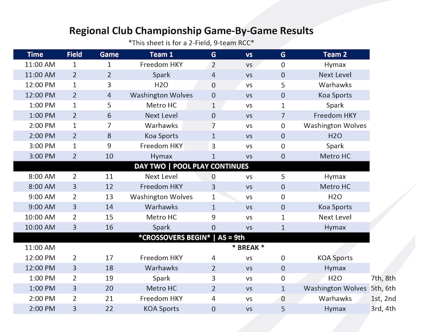 U-14 RESULTS: