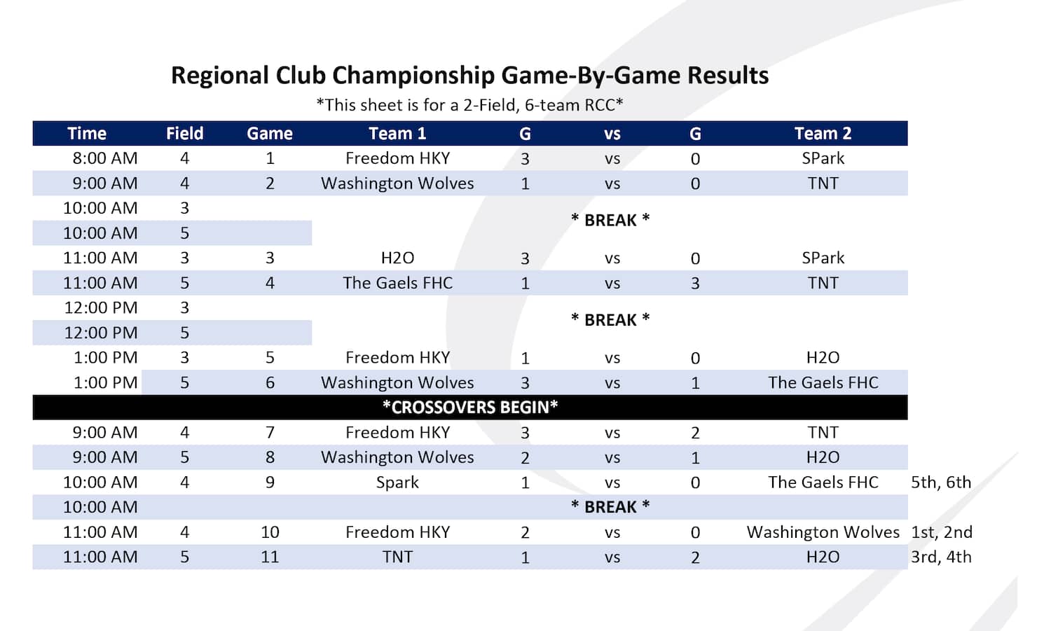 National Club Championship qualification: Regional Club Championships with 4 to 6 teams participating will qualify one Club; Regional Club Championships with 7 to 16 teams participating will qualify two Clubs, and regions with 17 or more teams participating will qualify 3 clubs. The remaining spots for the National Club Championship will be offered based on the current USA FH Club Ranking, to those Clubs placing 3rd in an RCC with 7 or more Clubs, or 2nd in an RCC with at least 4 Clubs. The highest ranked Club from amongst those, will be offered first until all spots have been filled.