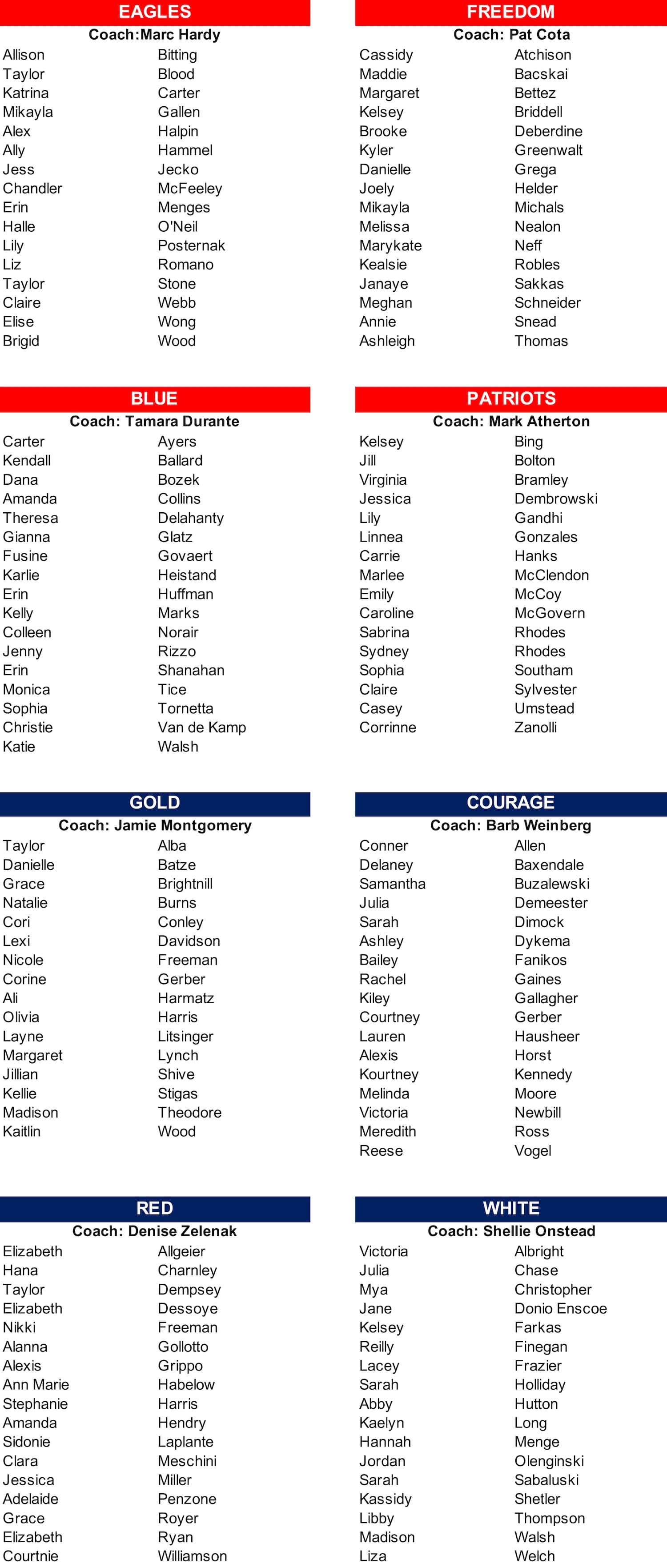 2018 YOUNG WOMEN'S NATIONAL CHAMPIONSHIP TEAMS