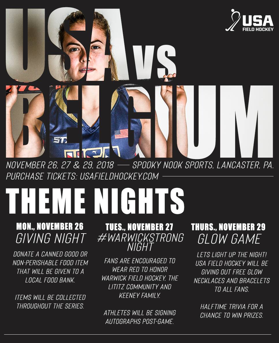 Discounted group tickets will also be available for each game when 10 or more tickets are purchased for the same match. Contact Glen Hollingsworth at ghollingsworth@usafieldhockey.com to purchase tickets for your group.