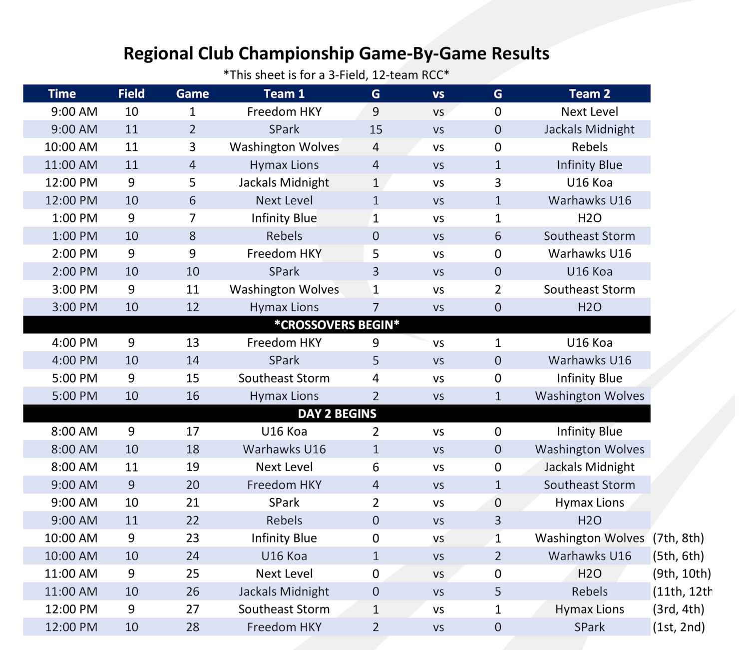 The total number of teams that qualify from a Regional Club Championship (RCC) to the National Club Championship (NCC) is dependent of the overall number of teams participating in each age division within a RCC. Please see a breakdown of the requirements below: