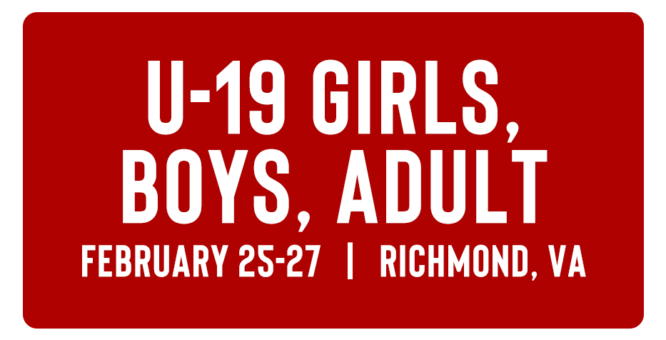 The 2022 U-19 Boys, U-19 Girls and Adult National Indoor Tournament, presented by YOLO Sportswear, will take place February 25 to 27 at The Greater Richmond Convention Center in Richmond, Va.
