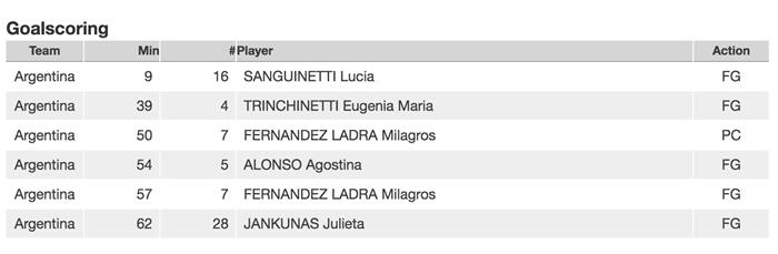 The second half opened with action flowing into the Argentina’s attacking end. An open Argentine player in front of Bing received the ball to plot the ball at close range into the goal to change the score USA 0, Argentina 2. Team USA continued with noteworthy resilience in their defense circle. Bing remained alert and composed through constant fire of Argentina’s sticks. In the 43rd minute of the game, Major used speed and clever stick work to beat two Argentina defenders. She was fouled outside the circle and the call was upgraded to USA's third penalty corner. Although, Argentina’s fly stepped out early and was sent back to the halfway line, USA was unable to get through Argentina’s defense. The direction of the game was transferred to the opposite side of the pitch and in the 48th minute which allowed Argentina to score off of their sixth penalty corner of the game. Bing saved the initial shot, but Argentina was able to convert on the rebound to make it USA 0, Argentina 3. USA snagged the ball off of Argentine’s stick at the midfield line for USA to develop a 3v3 toward goal. Vittese ripped a backhand shot to cage that hit the outside of the goal cage’s sideboard.