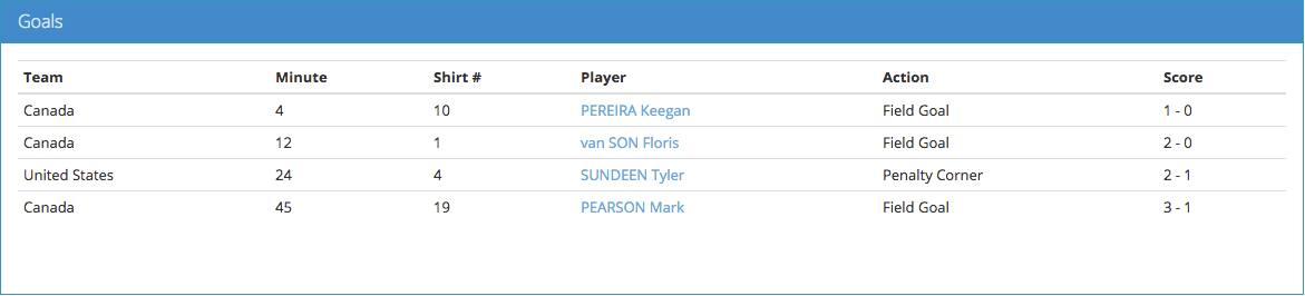USA was slow to start the game and get into a rhythm. With undecided assignments on the pitch combined with the swift play of their northern neighbors, it didn't take long to find a mismatch or capitalize on an opportunity. Canada's Keegan Pereira was able to put in the opening score in the 4th minute when USA was caught standing still on a free hit outside the circle. Following the ensuing restart, USA was able to settle into their game plan and play accordingly. With time running out int he opening frame, a build up and offensive press by Canada near the circle proved fruitful as Floris van Son netted the team's second score of the game for the 2-0 lead.