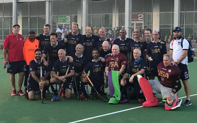 A strong first match from U.S. O-45 Men's Masters Team against Argentina. The team played a solid attacking game that took Argentina by surprise and led to an Amanmeet Sandhu (Modesto, Calif.) goal from a penalty corner. First quarter ended with a 1-0 USA lead.