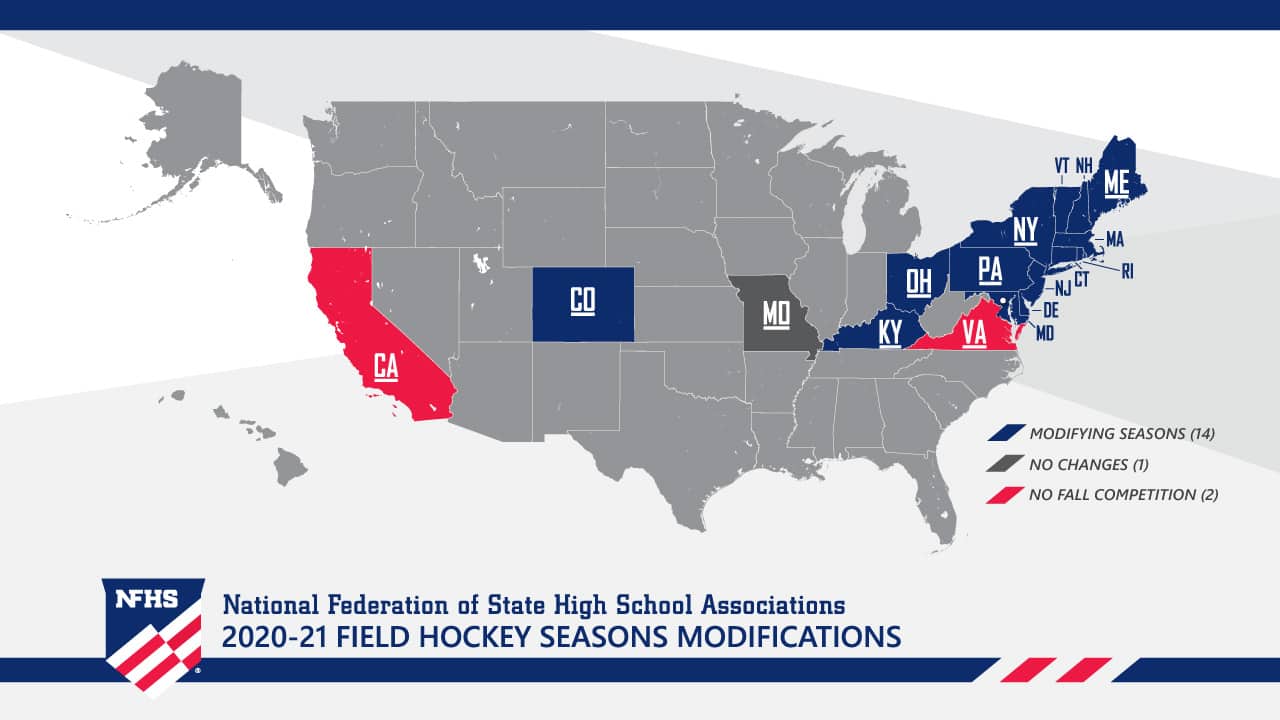 COLORADO SPRINGS, Colo. - Due to the ongoing coronavirus (COVID-19) pandemic, several state and sport associations have delayed, altered or postponed their fall 2020 sports seasons. To help navigate the ongoing changing landscape of high school fall seasons, USA Field Hockey has been in contact with regional and organizational leaders to help keep student-athletes, parents, coaches and followers up-to-date with the latest information.