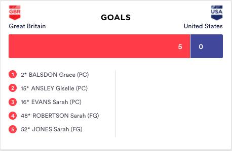 Following the game, Great Britain’s midfielder Sarah Jones was named Player of the Match.